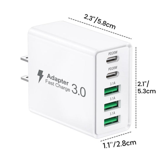 USB C Wall Charger Block, 2Pack 50W 5-Port C Charger Fast Charging Block PD Power Adapter +QC 3.0 Multiport Type C Box Brick Cube USB a Wall Plug for Iphone 15/14/13/12/11 Pro Max, Ipad,Samsung Galaxy Smartphone